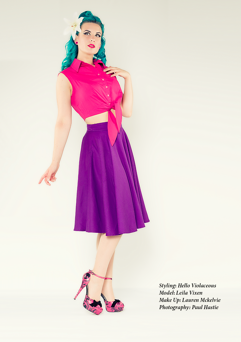 The chosen model for this shoot is Leila Vixen, an accomplished model with a very versatile look allowing her to easily blend pin up with a modern twist ideally suiting the clothing range.
