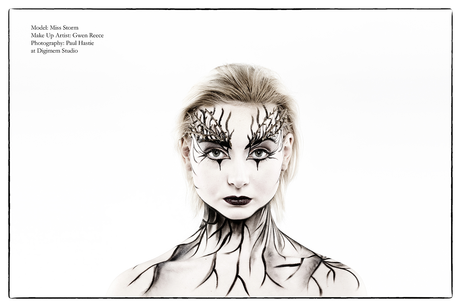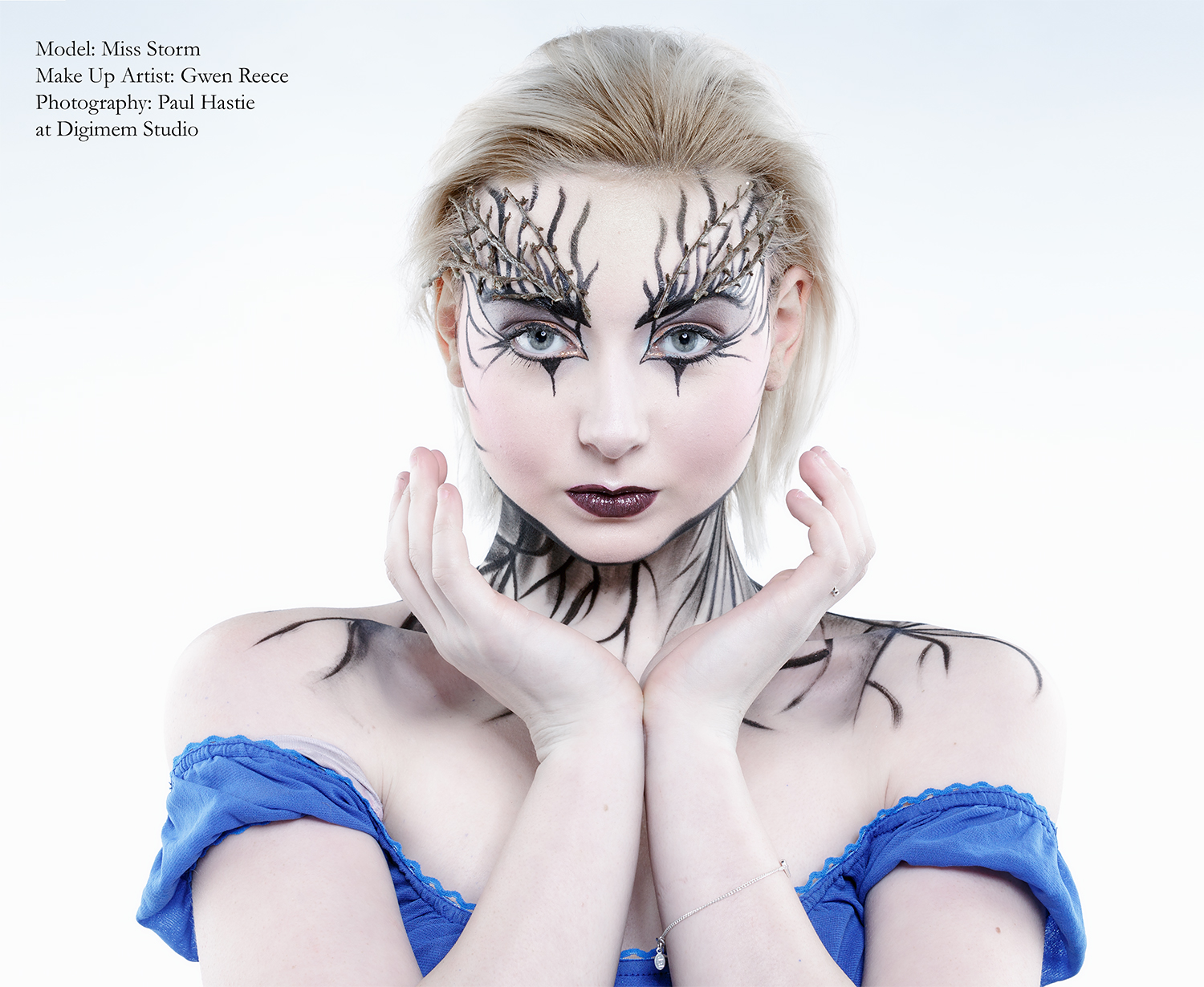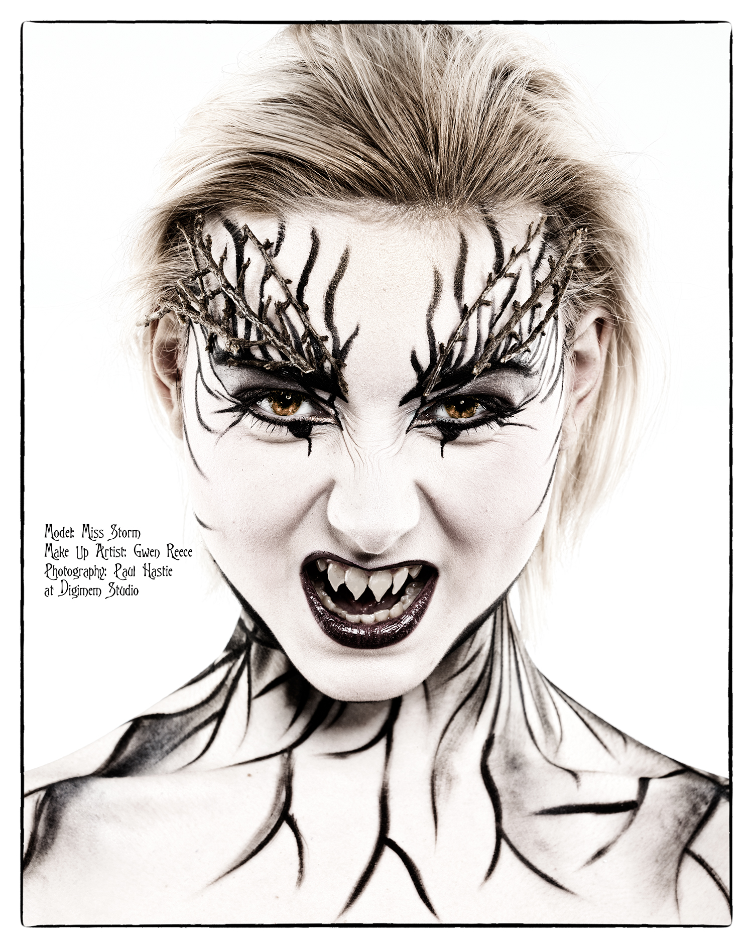 The images were all shot at Coventry’s Digimem Studio, and all the make up was created by Gwen Reece. The lovely model for the day was Sarah Rose / Model Miss Storm. Lighting assistance was provided by Ken Witherow