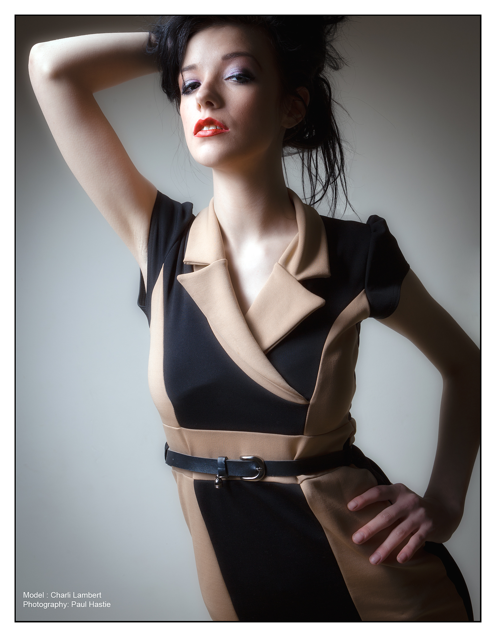 I shot a few images of Charli with the Striplight either camera left or boom mounted above, with the light feathered to accentuate her features. The striplight was from Bessel and is a cracking piece of kit and very affordable – a lot cheaper than the OEM equipment and of a similar quality. One word of caution and this applies to all makes, the striplight is a large softbox, and boom mounted it does sway a fair bit – make sure you counterbalance it (and remember to attach the power lead before putting it in position!)